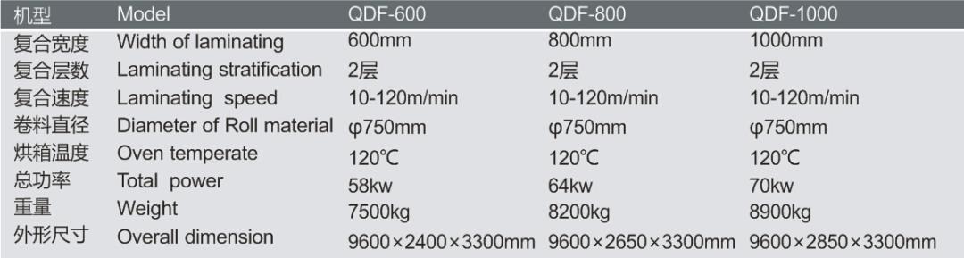 該機適用于BOPP、PET、CPP、鋁箔、紙張等卷筒狀材料,兩層多次復合,生產高強度,高保鮮、耐蒸煮等高品質的復合材料。